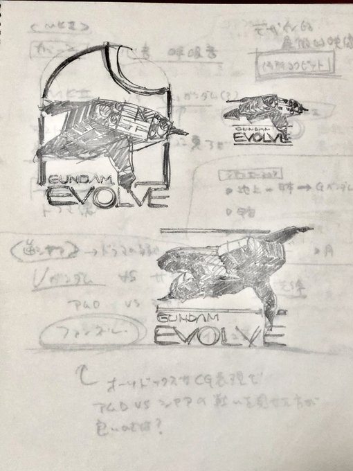 87 199 Evolve5ネタが流れてきたのでひとつ。 Evolve5の絵コンテは手元にありますが一度も見せてくれと言われたことがないですね。これはEvolveシリーズのロゴのラフですが私の書いた第1シリーズのプロット案が透けて見えていますね。 22/10/27 09:20