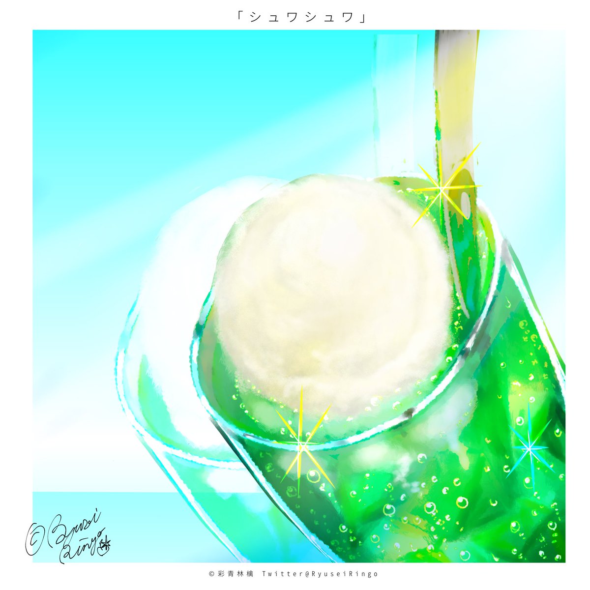 「シュワシュワ」 1番楽しく描けたのはジュースの泡🍹 1番難しかったというか描き方を悩んだのがアイス🍨 そして私はアイスがジュースの中で溶けて冷やされてガリガリした部分を食べるのが好きです✨ #イラスト #絵描きさんと繋がりたい #クリームソーダ