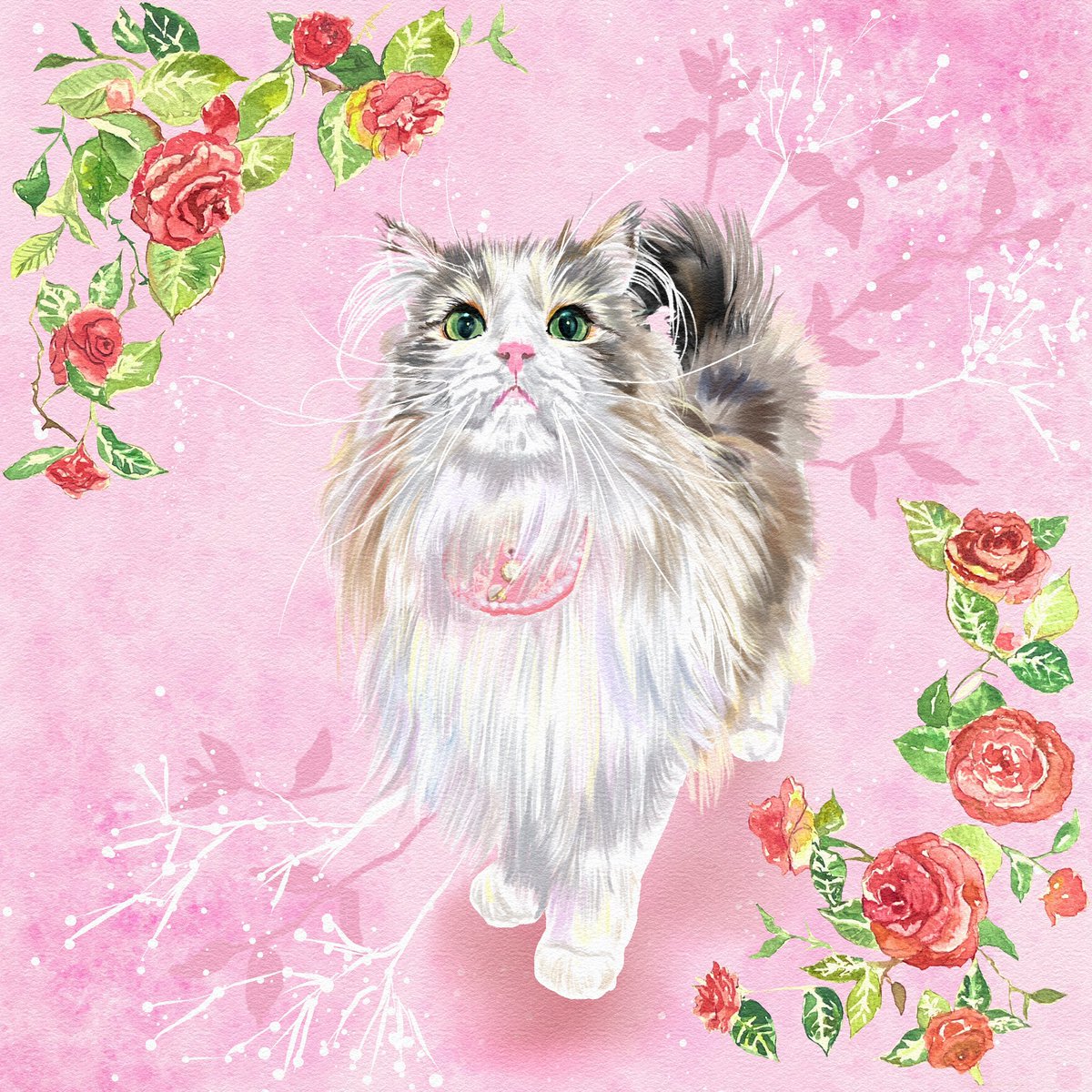 ララちゃん@n0208rara お描きしました✨お嬢様みたいでピンクがとても良く似合うにゃんこちゃん♡可愛いすぎます! #イラスト #絵 #動物 #水彩画 #ペット #リクエスト #猫 #似顔絵 #MofmofDays #猫好きさんと繫がりたい #絵描きさんと繫がりたい twitter.com/n0208rara/st…