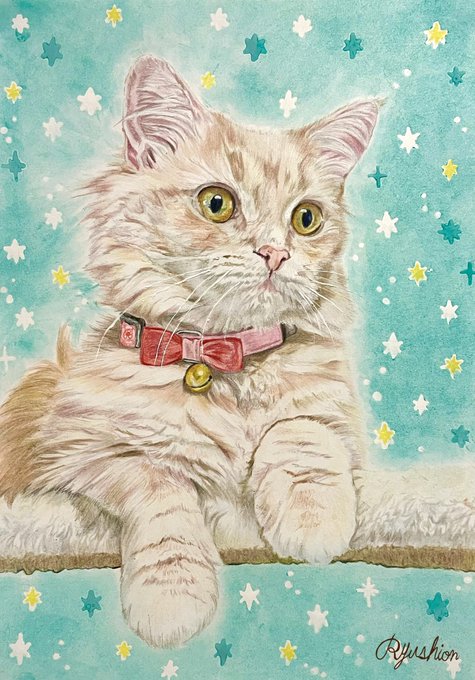 直哉くん@nyaoya__x 描かせていただきました!✨ふわふわで素敵な毛色、キラキラお目目ですね(*'ω'*) #イラスト #絵 #動物 #水彩画 #ペット #リクエスト #猫 #似顔絵 #MofmofDays #猫好きさんと繫がりたい #絵描きさんと繫がりたい twitter.com/nyaoya__x/st…