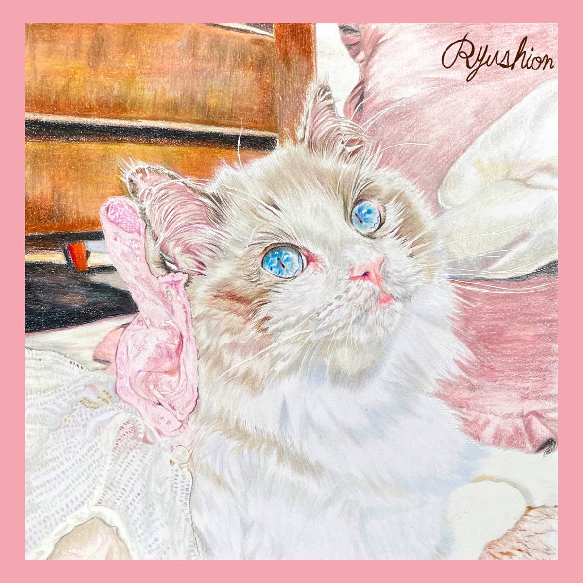 みるくちゃん@_milk_ragdoll_ 描かせていただきました☺️♡お目目が綺麗で宝石みたい、モフモフしたいです🥺色鉛筆画25×25cmパネル貼りしてます♪ #イラスト #絵 #動物 #色鉛筆画 #ペット #猫 #似顔絵 #MofmofDays #猫好きさんと繫がりたい #絵描きさんと繫がりたい twitter.com/_milk_ragdol…