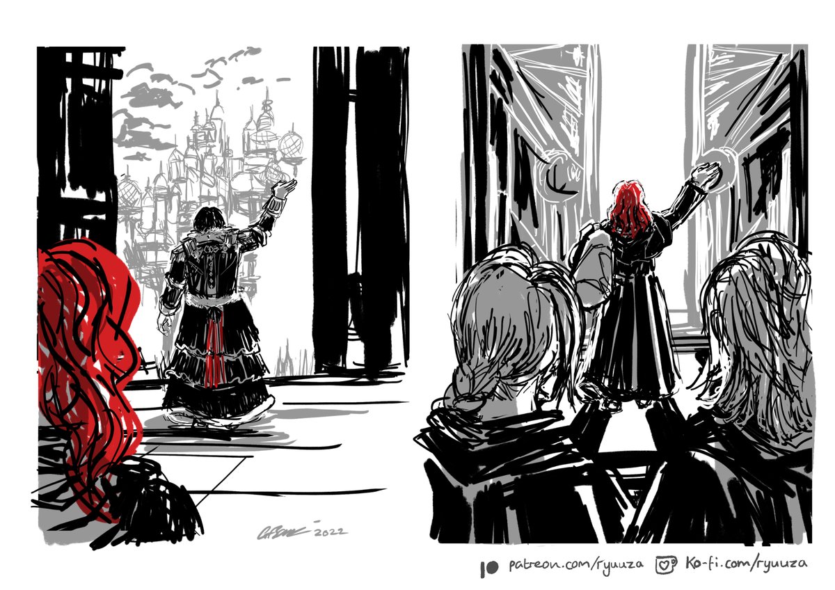 #EmetSummerSplash Day 2: Solitude Then and now. #EmetSelch #Azem #hythlodaeus #azemet #hythades #emetwol #FFXIVArt