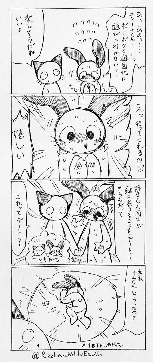 #ねこのティーチくんワンドロ お題「デート🐈❤️🐰」