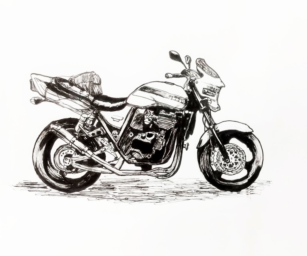 🇯🇵JOEさん @joe_wwww の Kawasaki ZRXを描かせていただきました 絵は白黒ですが…本当は、緑色です💚 #カワサキ #バイク #イラスト #イラストレーション #イラスト好きさんと繋がりたい #イラスト好きな人と繋がりたい #illustration #bike #アナログ #モノクロ #ペン画 #drawing #練習