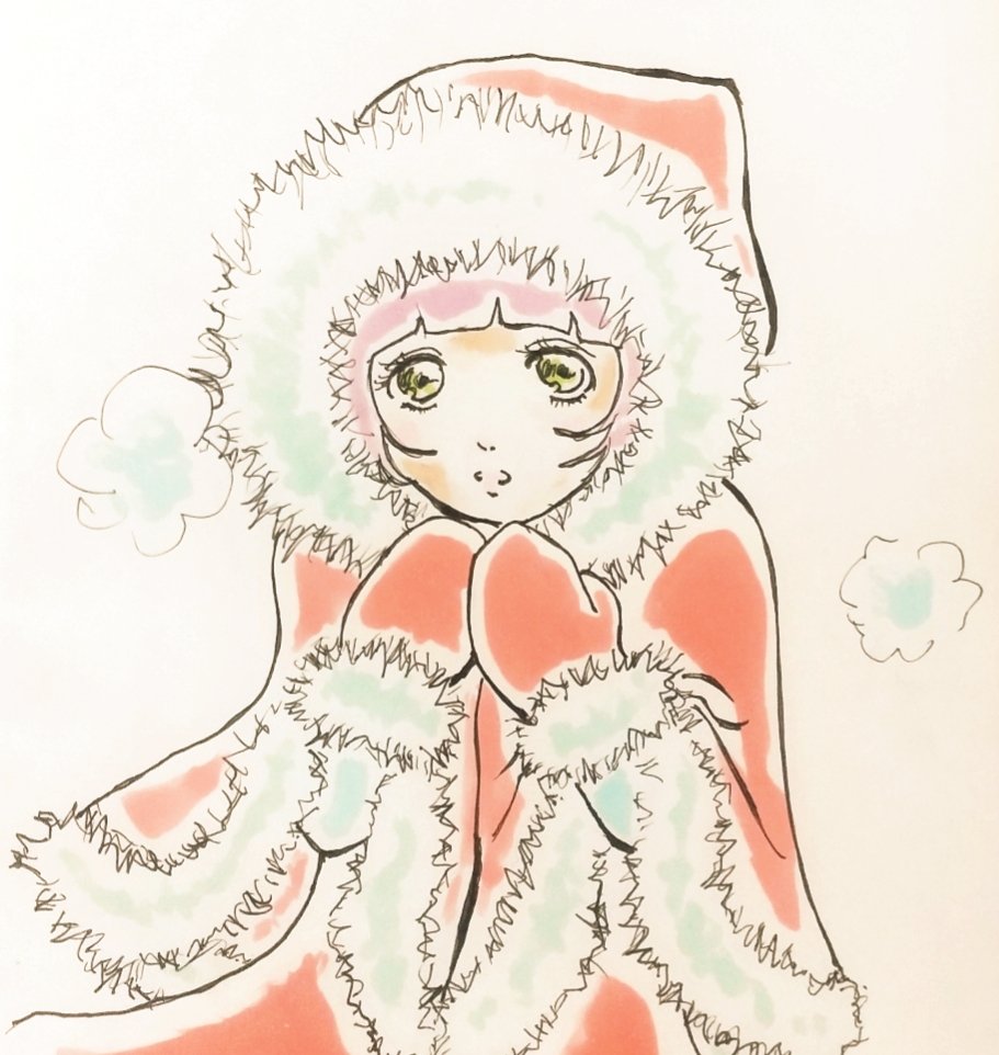 もこもこ赤ずきんちゃん 寒そう #illustration #drawing #イラスト #イラストレーション #イラスト好きさんと繋がりたい #コピック #赤ずきん #女の子 #ファー #ポンチョ