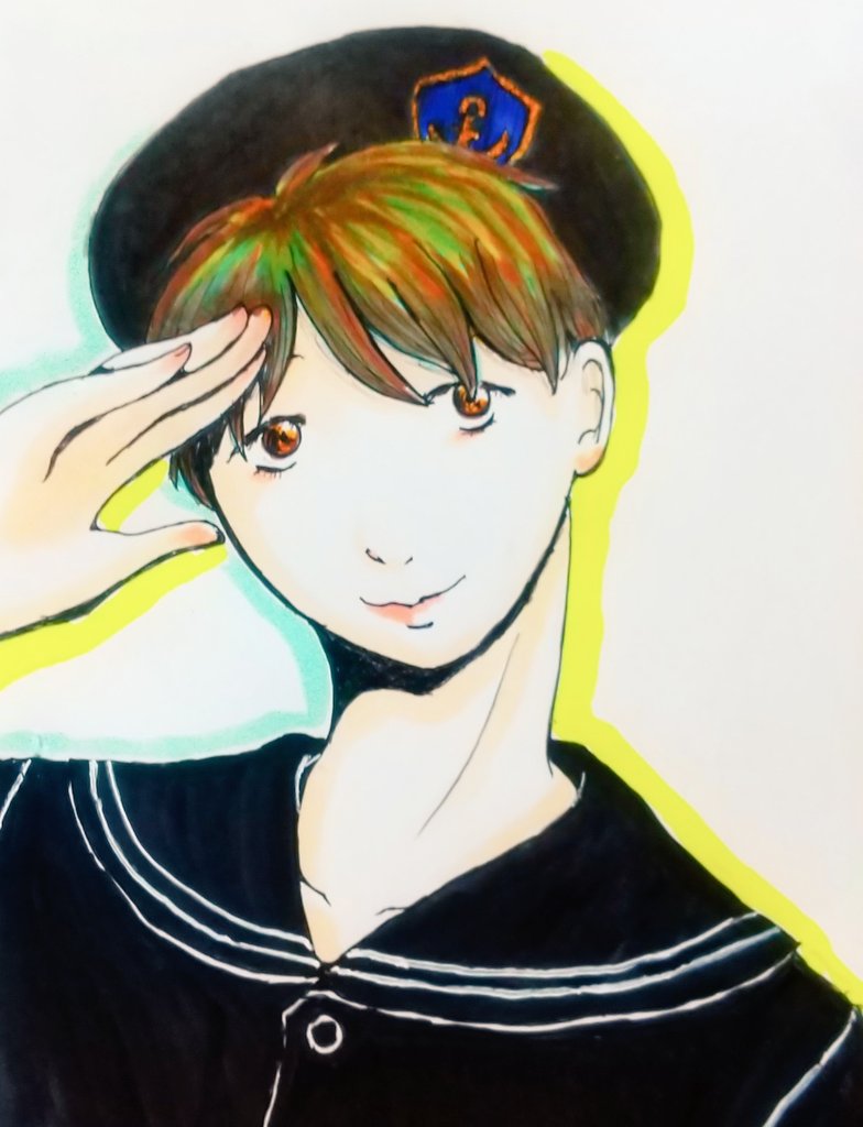 勝手に餃子丸さんファンアート 爽やかすぎるイケメン餃子丸さんにセーラー服を作って送り付けた(現在輸送中)変態はわたしです。 #illustration #drawing #art #セーラー服 #イラスト #イラストレーション #イラスト好きさんと繋がりたい #コピック
