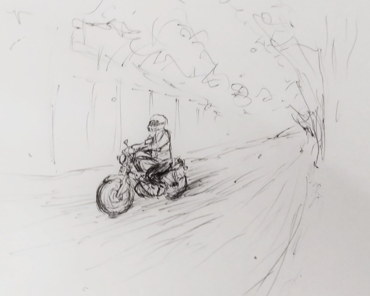 できた 愛車(ブロンコ)は下書きで挫折した人間だが、今日も頑張った #YAMAHA #ヤマハ #ビラーゴ #アメリカンバイク #バイク #イラスト #イラストレーション #illustration #drawing #イラスト好きさんと繋がりたい #イラスト好きな人と繋がりたい #モノクロ #白黒 #bike #アナログ #ペン画