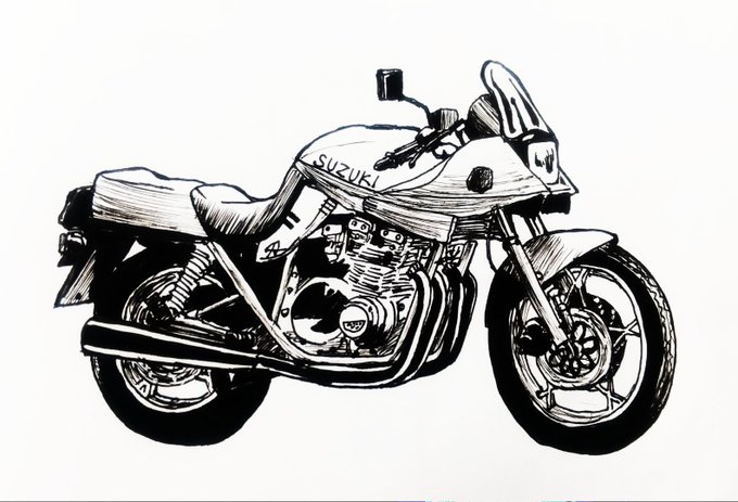 SUZUKI GSX1100S KATANA #イラスト #イラストレーション #illustration #バイク #スズキ #カタナ #アナログ絵 #万年筆画 #イラスト好きさんと繋がりたい