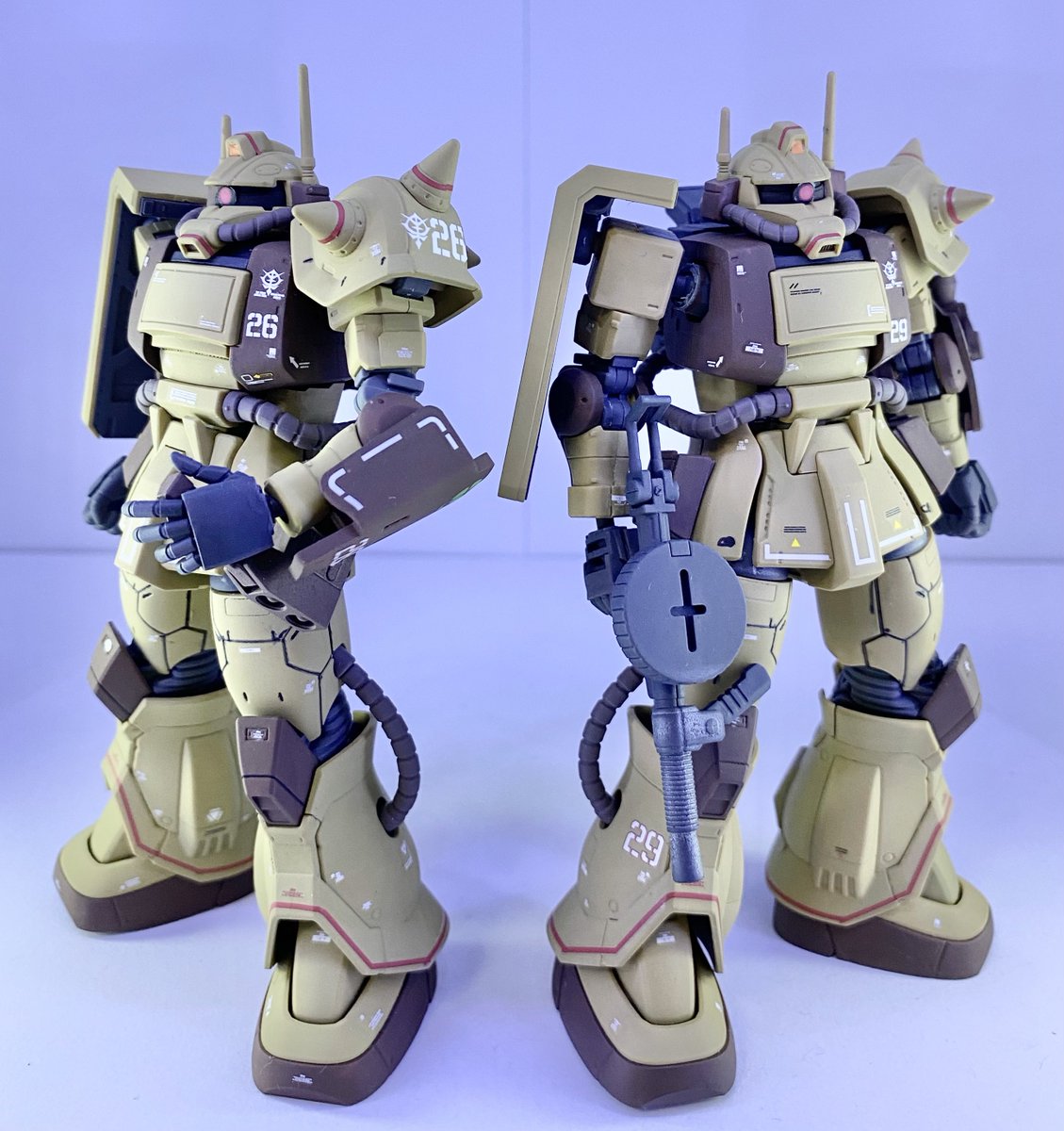 おはよう御座います😃5/14日曜日。天気は雨☔️さて今日も完成品上げときます。デザートザク(ダブルアンテナ)迷彩デカールは上手く貼れなかったんで諦めましたわ🫤後ナンバーは26しかなかったんで6だけ切って反対に付け直し😑では今日もゆっくり行きましょう♪ #ガンプラの画像を貼るとRTされると聞いて