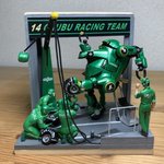 こちらはチームの偉い人。笑みを浮かべている様子。 細かいところでは予備のインパクトレンチやタイヤの新品とusedを分けていたりします。 ピットクルーは緊張しているけど、ウィーゴ はのんきに入ってくるギャップが面白いんじゃないかと。 #メカトロウィーゴ #メカトロキューブ4
