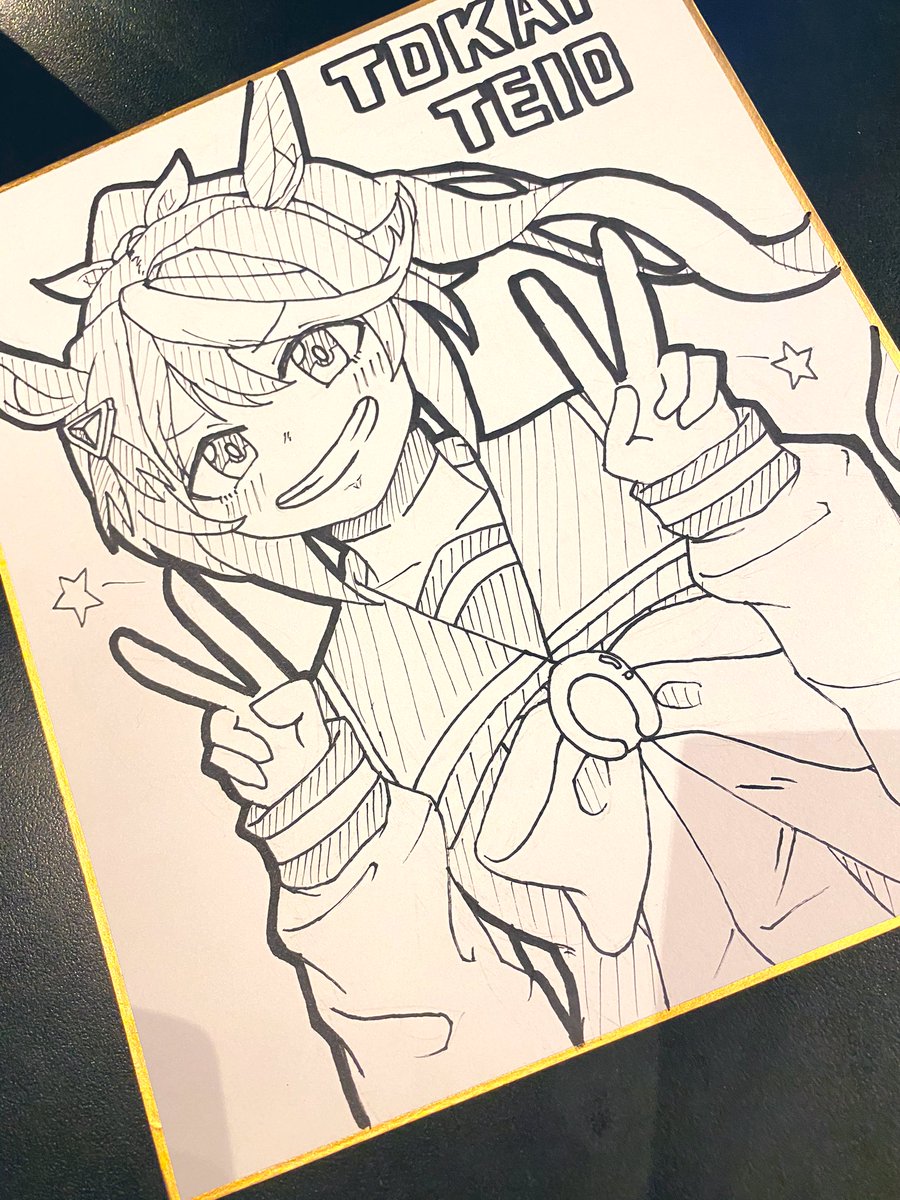 初めて色紙で描いてみました‼︎テイオーです!難しすぎる、、🍯
