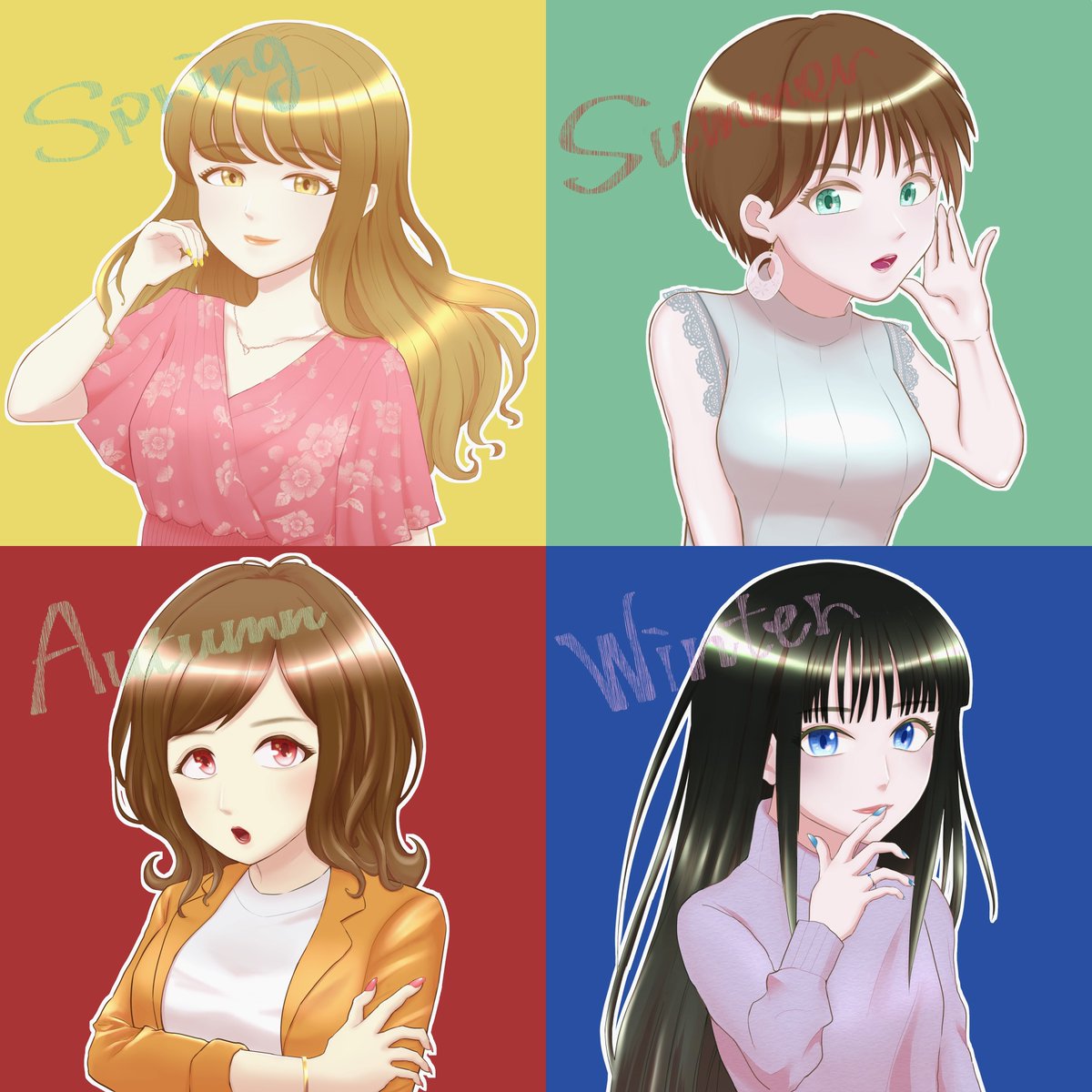 パーソナルカラーシリーズ4枚描き終えたのでまとめました! #イラスト #イラスト好きな人と繋がりたい