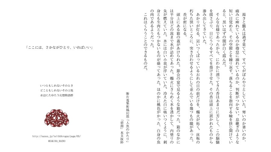 #エアコミティア #エアコミティア138 片足靴屋/Sheagh sidhe 幻想文学っぽいものをつくっています。人魚や道化、妖精や詩人。異類や冥婚。さかいのとろける物語群。 通販 store.retro-biz.com/?mod=item&act=… おはなし kakuyomu.jp/users/sakihaha… #エアコミティア_SFファンタジー #エアコミティア_通販 #人魚