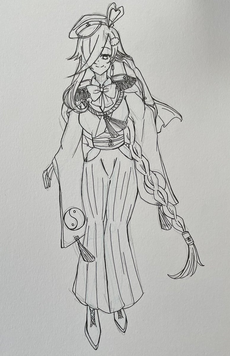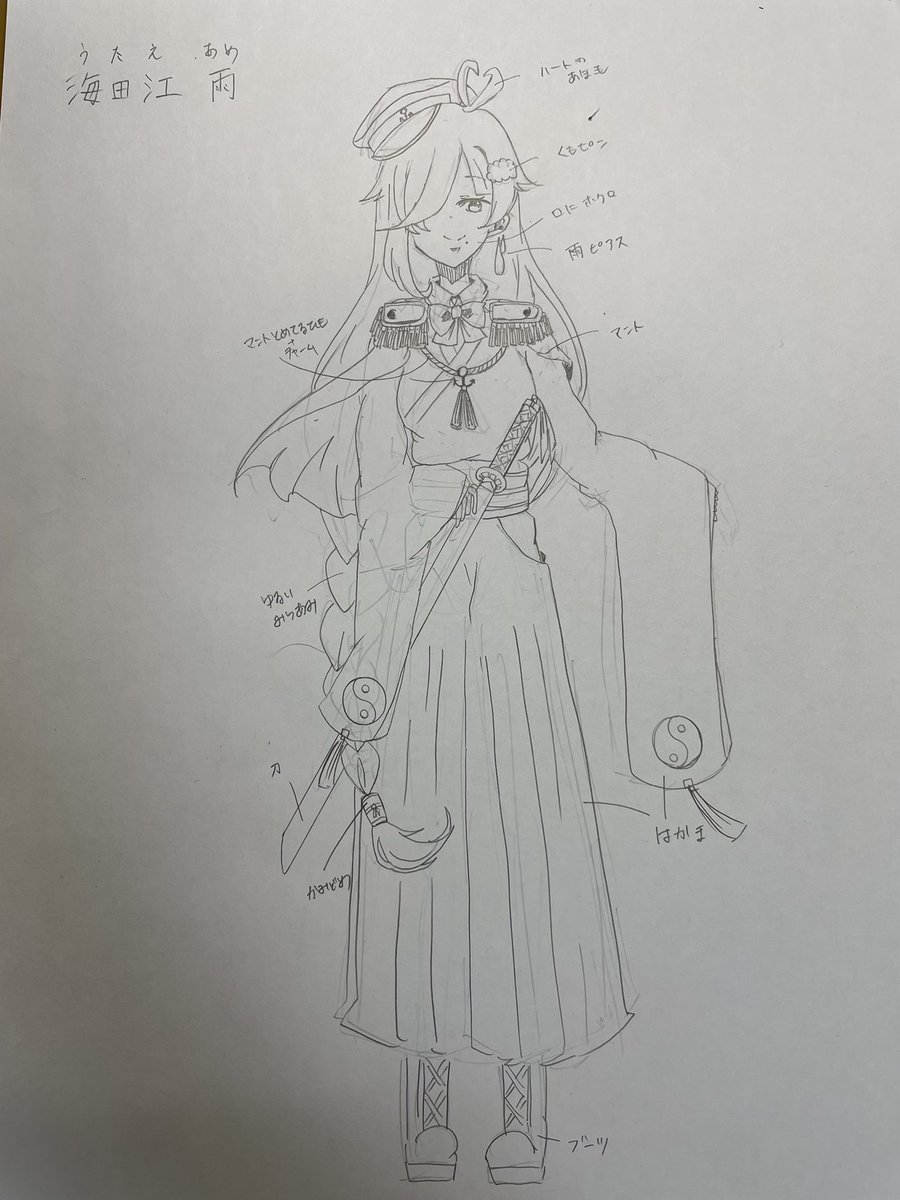 初めてガチで1から描いた ドレス素材なしで 大健闘したべ…… 割かし頑張ったよねw #にじさんじ五十音順に描いたら童田明治の時には画力上がってる説 最後まで絶対いかないけどねw 髪の影入れれないから誰か塗ってくれ #ういはぁーと