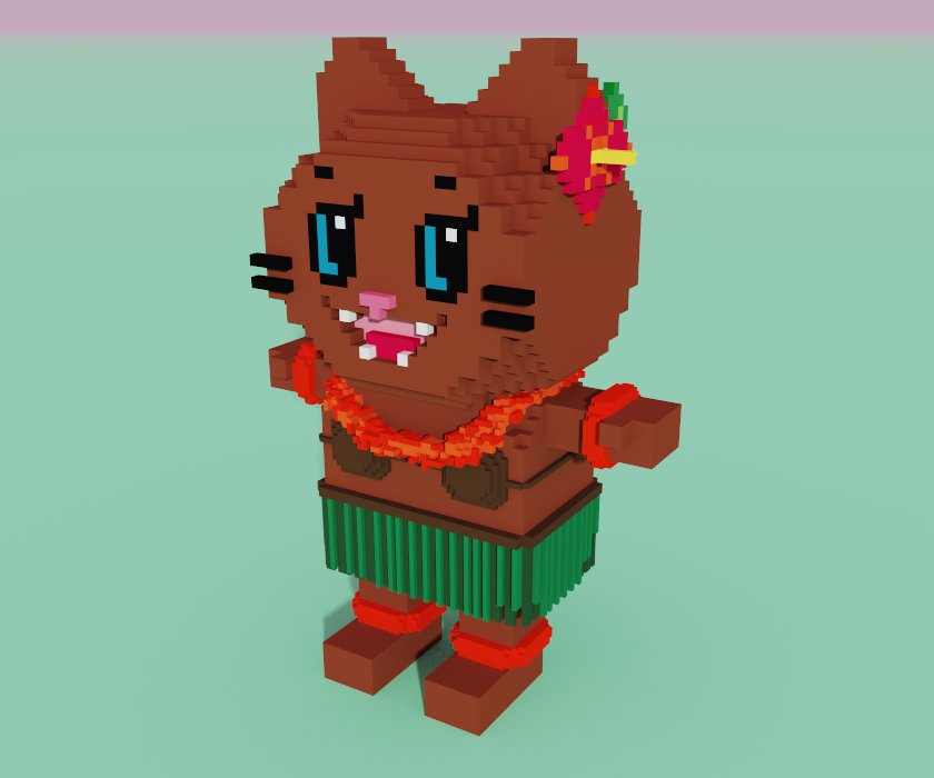 フラガールねこちゃん、5/30 18:00にリストします🌺❣️ #HEXANFT #HEXA #HEXAメタバース #voxelart nft.hexanft.com/users/gWqonn9V…