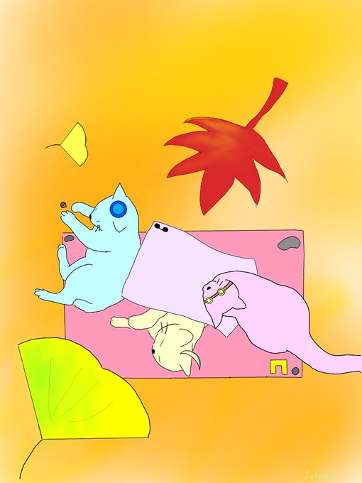 1 10 レジャーシートの四隅に石とかペットボトル置きがち (猫にトレス素材を使用しています) #はよ見ろやあ #誰でも見れますねぇ #見るかもわからん #ドズル社アート 22/09/20 19:46