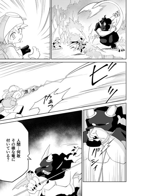 今日の竜娘漫画:右…28p、左…29p ブレスやビーム的なやつは「最初は太いけどだんだん細くなって、『なのに』威力が上がっていくっていう、エネルギーの収束感を描けると今風だと思います。 だがコマ数が足りない! 1ページ目から読む→ #ドラゴン・カラー #漫画が読めるハッシュタグ #漫画