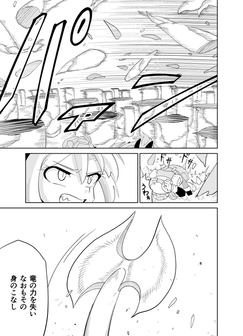 今日の竜娘漫画:右下…30p、右上…31p、左…32p ※「ズオッ」から逆順でお読みください。 はじめての32p読み切り漫画でしたが、これでコンプリートです! 読んでくれた・反応くれた方々本当にありがとうございました🙏🙏🙏 1ページ目から読む→ #ドラゴン・カラー #漫画が読めるハッシュタグ #漫画