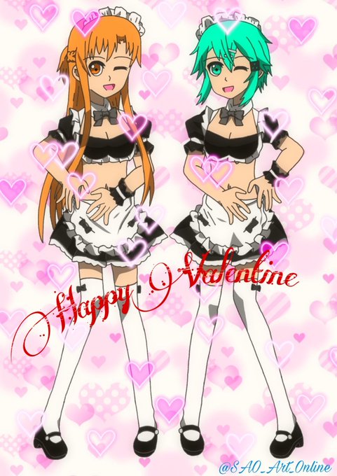 #SAO #ソードアート・オンライン #アスナ #シノン #アスシノ #バレンタイン #バレンタインデー #バレンタインイラスト Happy Valentine!!🍫 萌え萌えきゅん♪ポーズしてるメイドアスシノ描いてみました~、最強のメイドさんにご奉仕されたいw