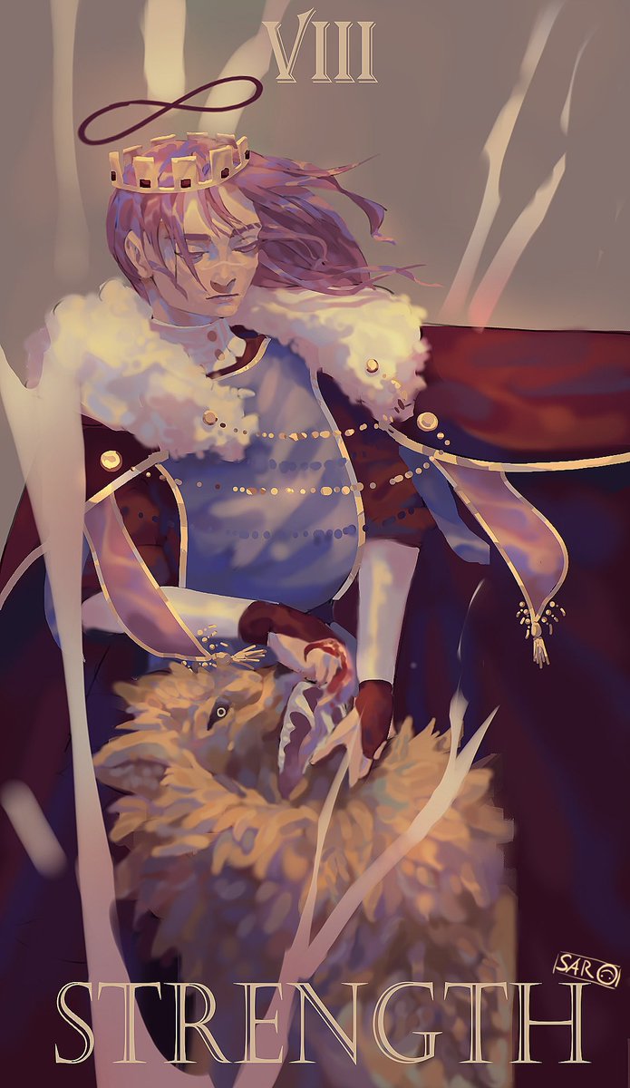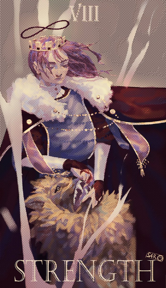 {VIII: Strength} . A wild Techno tarot card has appeared, what will you do :D! . . . {(plz this keeps flopping and I am so proud of this art)} #technofanart #technobladefanart #technoblade #dreamsmpfanart #dreamsmp #myct #myctfanart #tarotcard