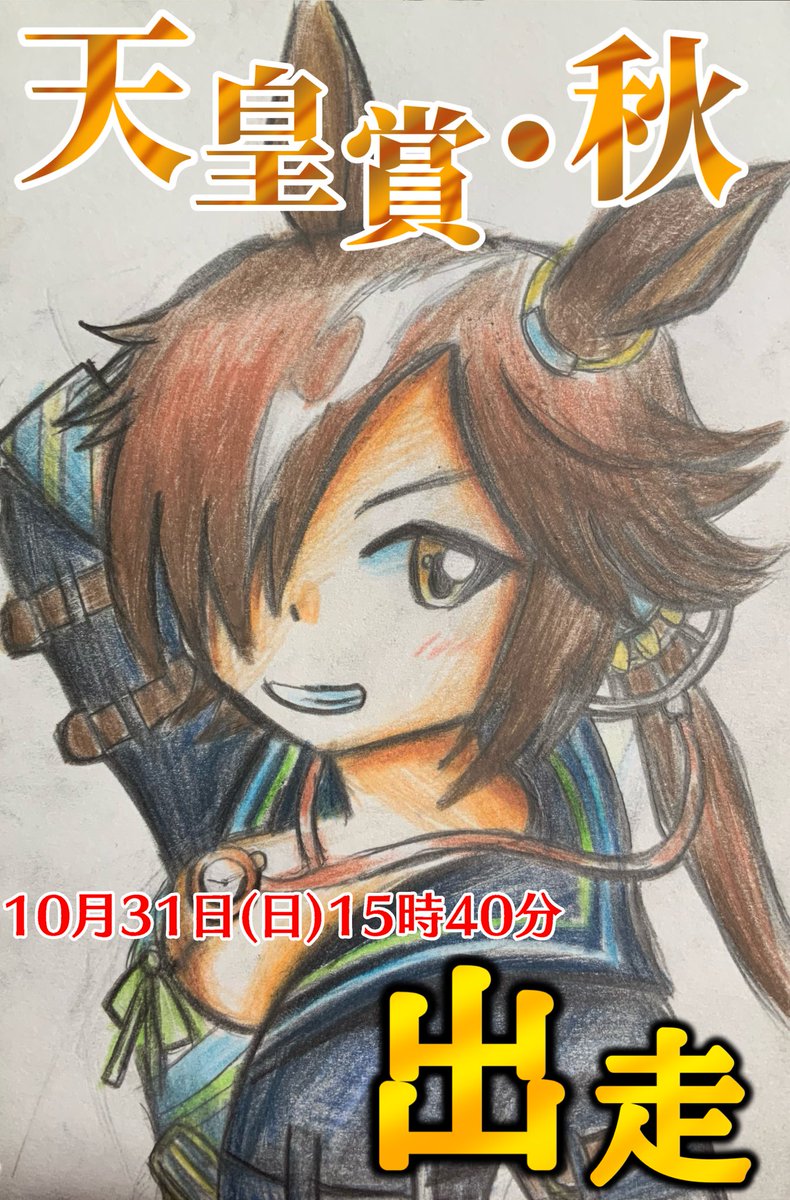 7 23 下手くそですけど自分の手でスペシャルウィーク描きました。 #ウマ娘 22/10/13 22:37
