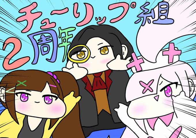 チューリップ組2周年めでたい… 3人とも忙しくて今は難しいかもしれないけど3人のコラボまた見たい!! #いらすこや #描かれて走 #シェリンの証拠品