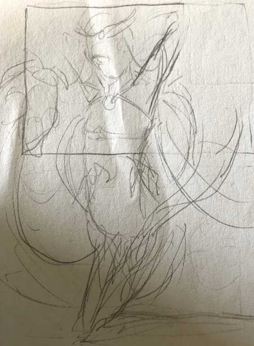 #このタグを見た人はラフ画とその完成絵を見せる 去年描いた、シルシちゃん四号絵。