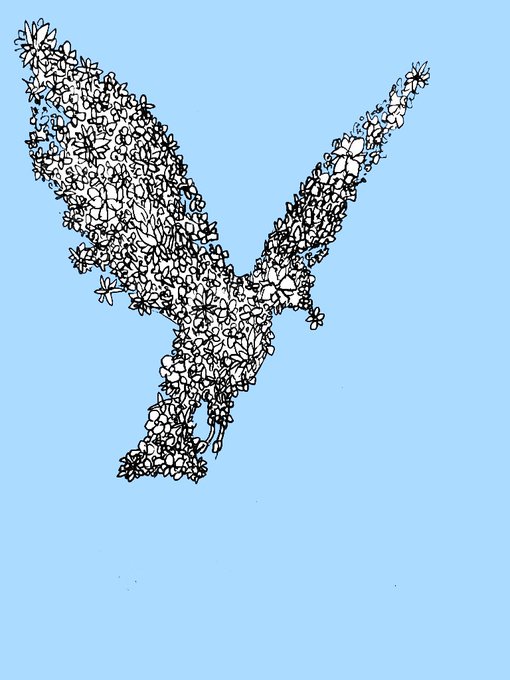 #一日一絵 マグリットの大家族の鳥を 花描画法で描いてみました 「大花族」 #お絵描き #アート #ART #アート好きと繋がりたい #イラスト #イラスト好きな人と繋がりたい #お絵描き #お絵描き好きさんと繋がりたい