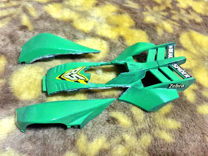 3 11 #このタグを見た人はラフ造型とその完成品を見せる 小学生の時に作った謎の緑色ビークスパイダーが塗装落としてみたらスモークだったのでくっつけた。 19/08/02 18:57