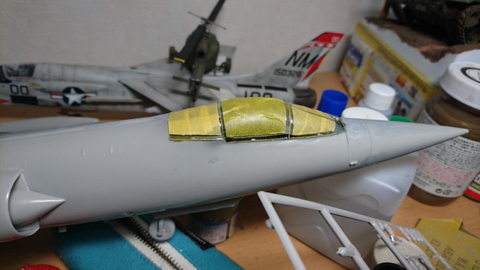 2 16 #マルヨン祭り コクピットの塗装が終わったのでキャノピーマスキング&接着。 接着には、オススメされた接着剤を 19/03/16 21:34