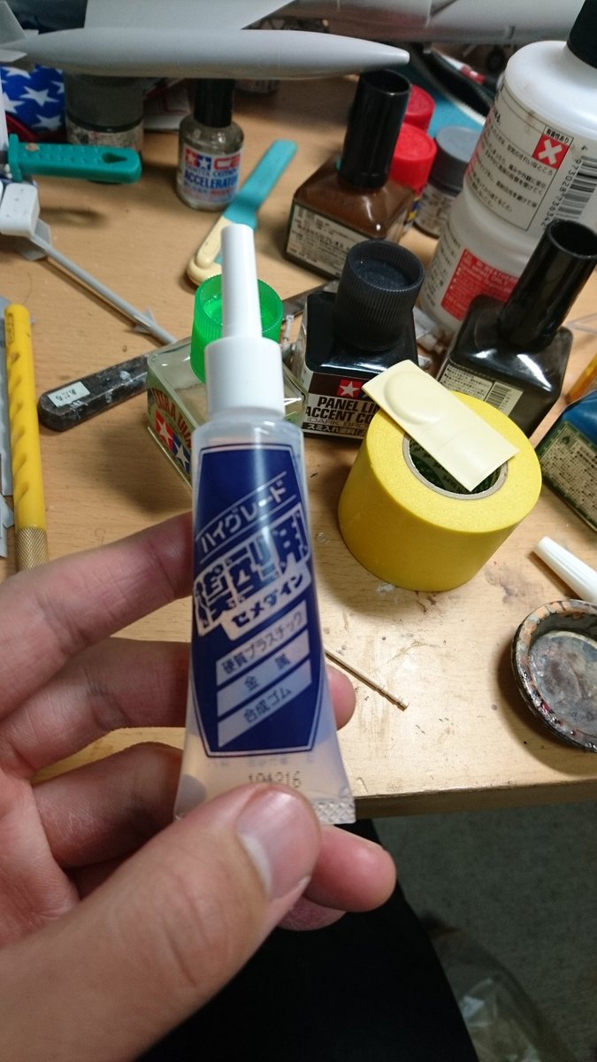 #マルヨン祭り コクピットの塗装が終わったのでキャノピーマスキング&接着。 接着には、オススメされた接着剤を