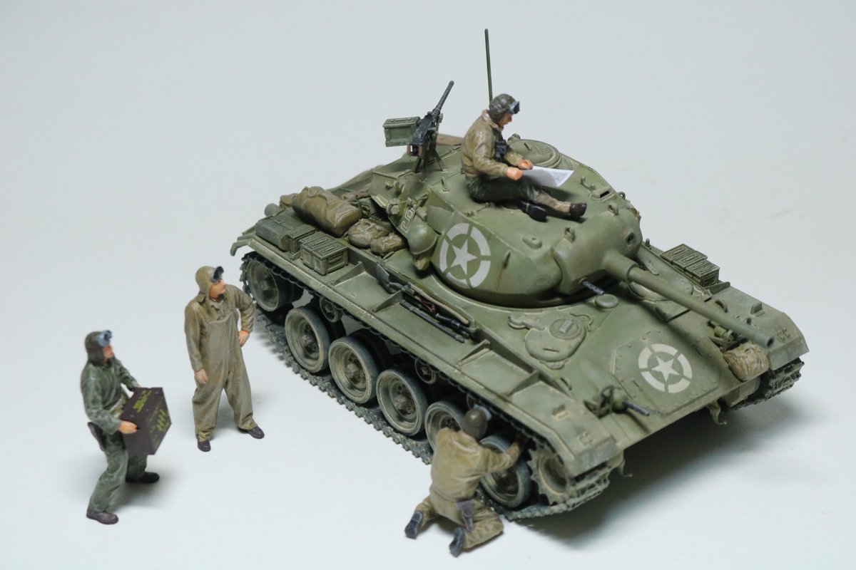 35 170 タミヤ・イタレリ M24チャーフィー完成です タミヤの米軍荷物セットや砲身も金属製なのでお得なキットだと思います。 18/10/28 23:45