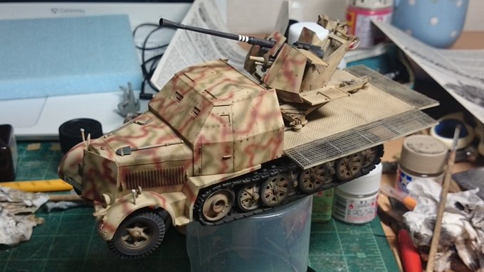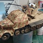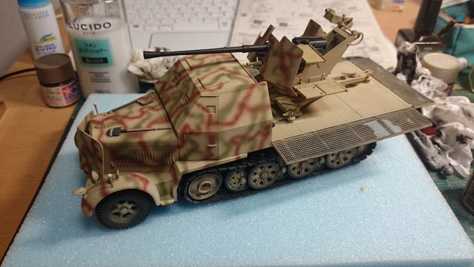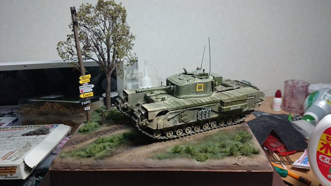 9 62 #わいわいドイツ戦車プラモコンペ ジオラマの台座の塗装と車両の基本塗装完了しました。 19/01/01 18:07