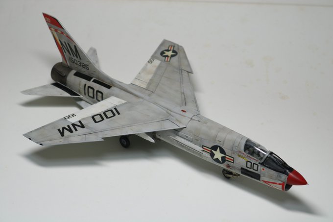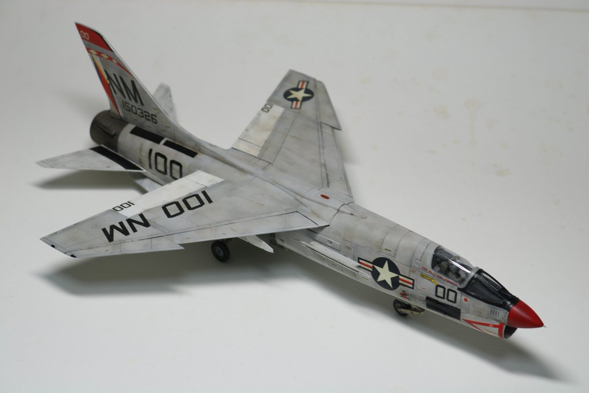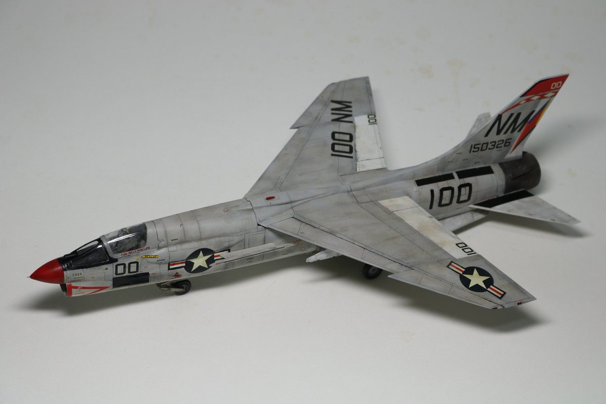 ハセガワ1/48F8Eクルセイダー完成です 48のジェット戦闘機は初めての製作でした。 今回の反省点は、接着剤によるキャノピーの白化と古くなってダメになったデカールの対策です。