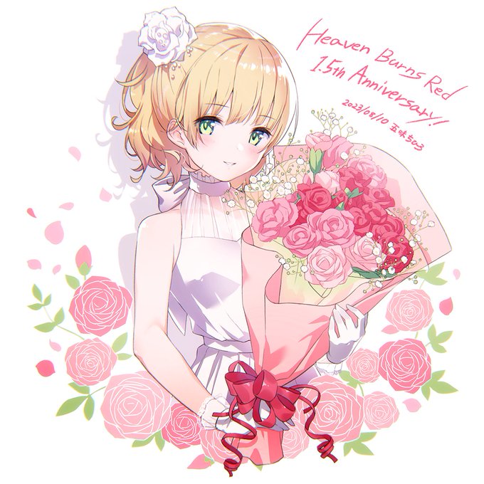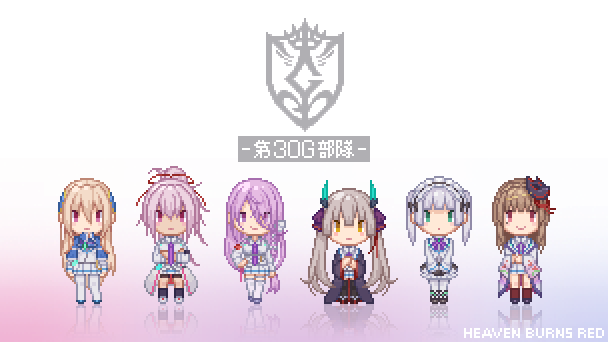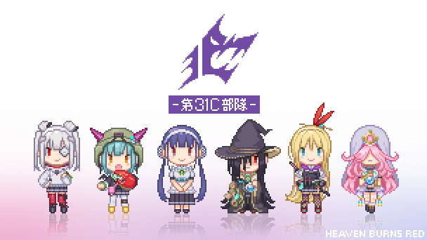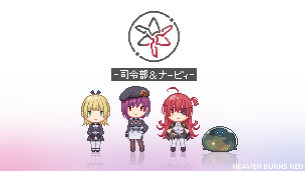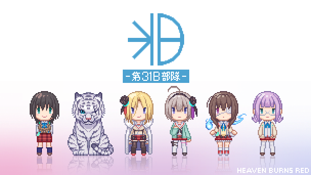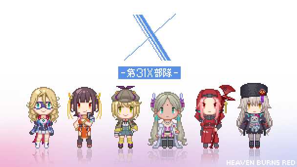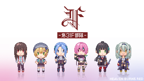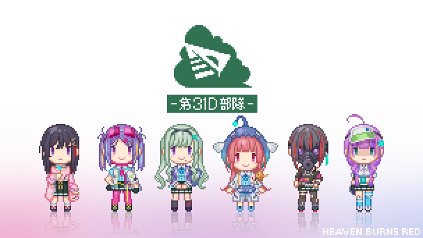 一昨日のやつにアニメのワンシーンっぽく色乗せ。 早朝の任務で朝焼け眩しい中ダイブしている時、 誰かが言い出して(きっと月歌あたり)照れ臭く感じながらもみんな付き合ってあげてる的な。 #ヘブバン #ヘブバンファンアート