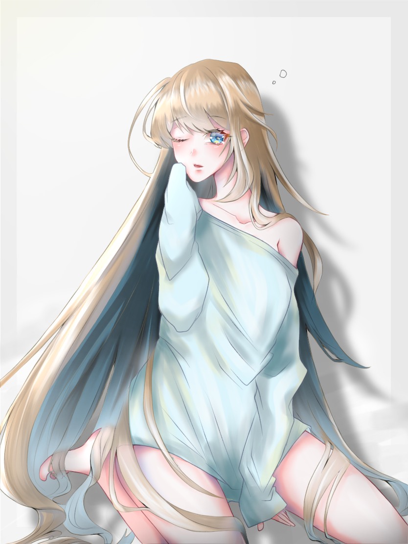 寝起きミューエ描いてみました! 寝起きに寝起きのイラストを仕上げた…💤 #白猫お絵描き #イラスト #イラスト練習中