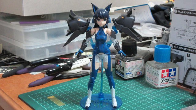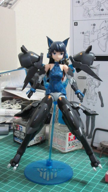 3 8 組立五日目。 武装が完成。 ハンマーのスプリングはなくした。 3枚目は8月頃に組んで写真撮るタイミングをなくしてたメガミ バゼ子(アニメVer)。 #メガミデバイス #小芦睦海 22/10/12 22:54