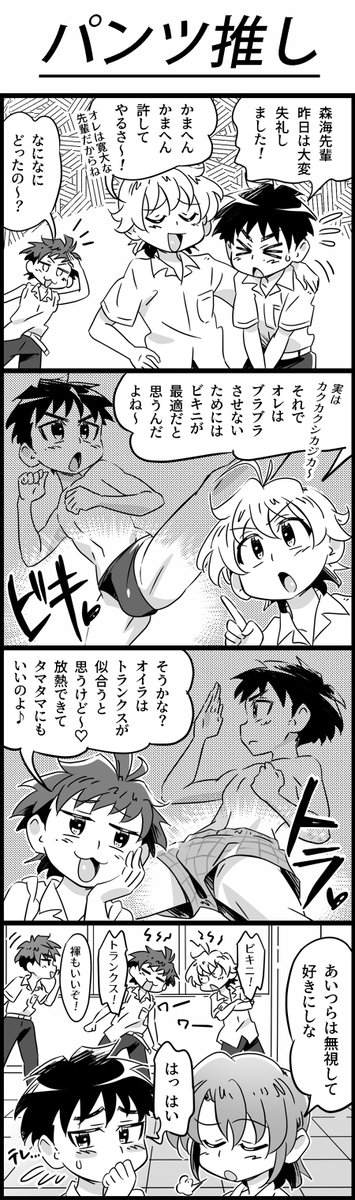 その347: パンツ推し(#森海友 #綾瀬しのぶ #赤峰月 #奥村慎太郎 #清武一) #スクボ #4コマ 2emegymnopedie.blog77.fc2.com/blog-entry-698…