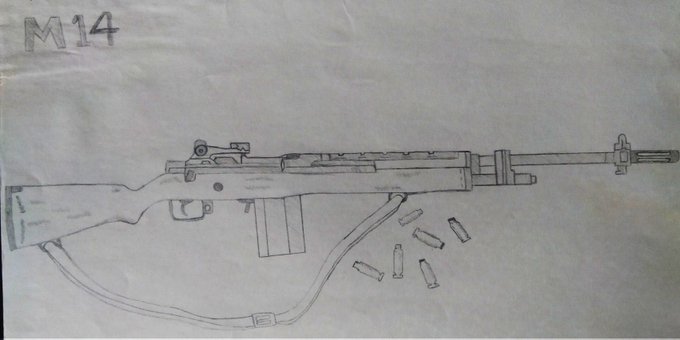 そろそろ銃以外も描きたい…。 今回は4式半自動小銃の試作乙型を描きました。 #イラスト #鉛筆画 #ミリタリー? #日本軍