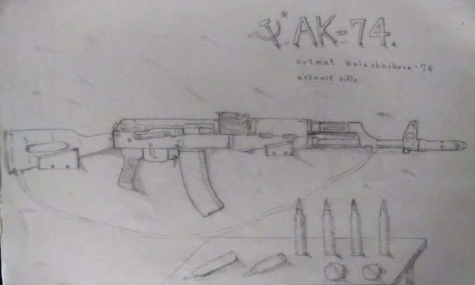 0 10 描いていて思った事。 (あ~サバゲー行きてぇ~‼️) #イラスト #鉛筆画 #ミリタリー? #AK-74 22/07/10 19:21