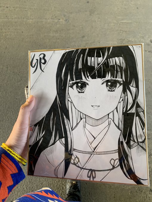 #稲沢イラストアート展 こうまる@chan_saku2021 先生の「卯」さんの色紙お迎えしました、マジべっぴんさん🐰✨ メイン機のヘッド裏にかわいいサイン頂きました✨️ 缶バッジは鋼の無頼漢@hagane877 氏から買収しました(これ言っていいの?アレだったらマジですいません💦)🍛🍛🍛🍛