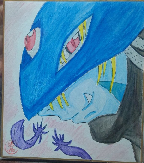2 3 @date_suparo08 箒ブラシと三角巾のオメガモン、こんな感じでしょうか? 落書きですが 20/08/10 12:16