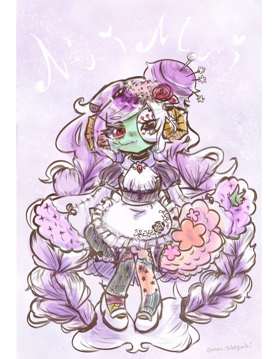 #一次創作絵師拡散フェス01 ツノ儚いロリ癖っ毛ロングみつあみ異色肌つぎはぎ紫色……好きに性癖×人外描きなぐってます🐑💜🌹 絵・立体・アクセサリーあれこれ創作活動してます 誰かに刺さると嬉しいです。
