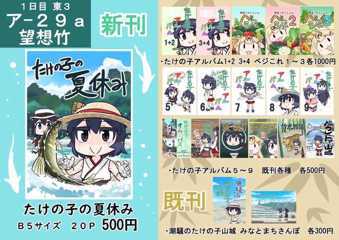 夏コミのお品書きになります 8月12日(土)東3ホール ア-29a サークル「望想竹」 どうぞよろしくお願いします~!