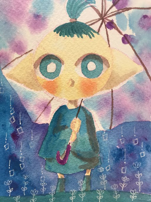 1 7 「傘を差すリオン」 #アクリル絵の具 #水彩 #イラスト #ペン 22/06/29 12:15