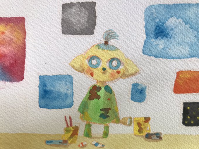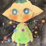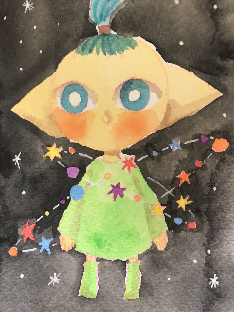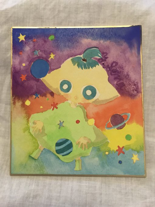 2 3 「リオンと宇宙」(136mm×121mm) #アクリル絵の具 #水彩画 #art #イラスト 22/07/18 18:50