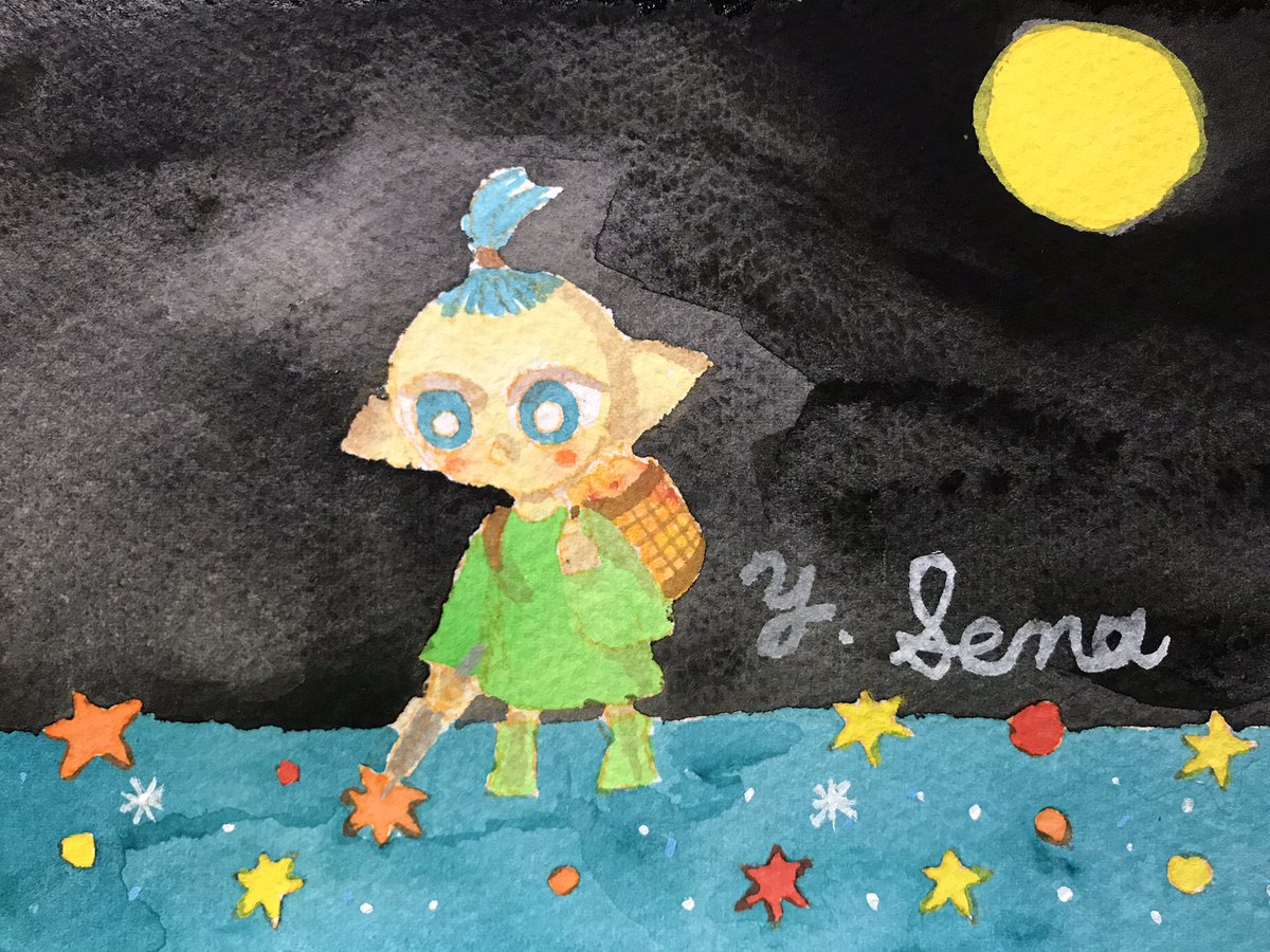 「星を拾うリオン」(葉書) #アクリル絵の具 #水彩画 #イラスト