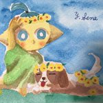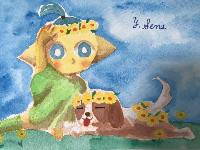 3 9 「リオンと花の輪っか」(葉書) #アクリル絵の具 #水彩画 #イラスト #水彩画イラスト 22/07/14 15:30