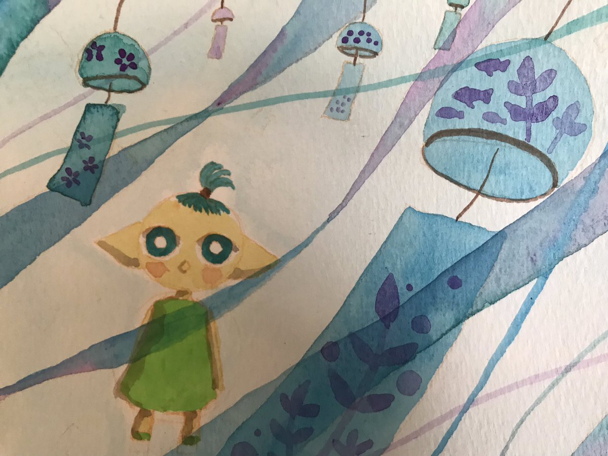 「リオンと風鈴」(葉書) #アクリル絵の具 #水彩画 #イラスト #art