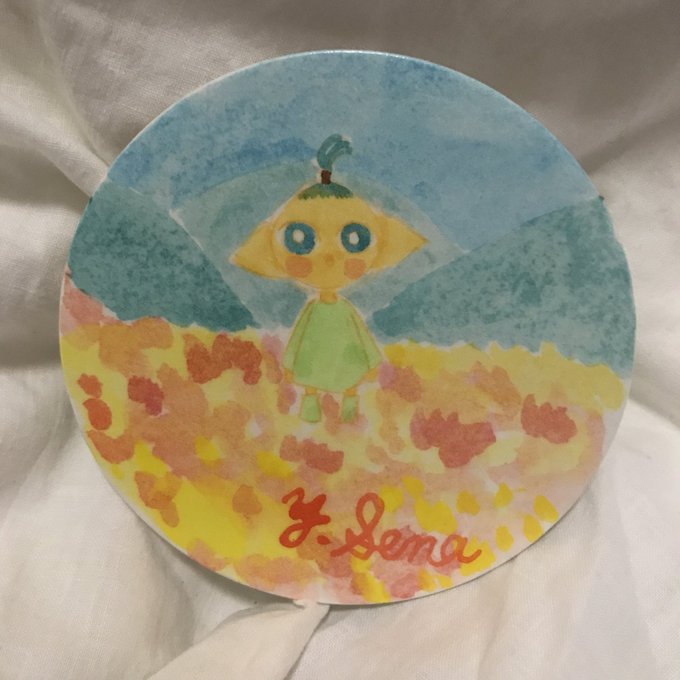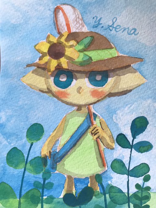 1 3 「リオンと花畑」(90×90mm) #アクリル絵の具 #水彩画 #イラスト 22/08/16 18:59